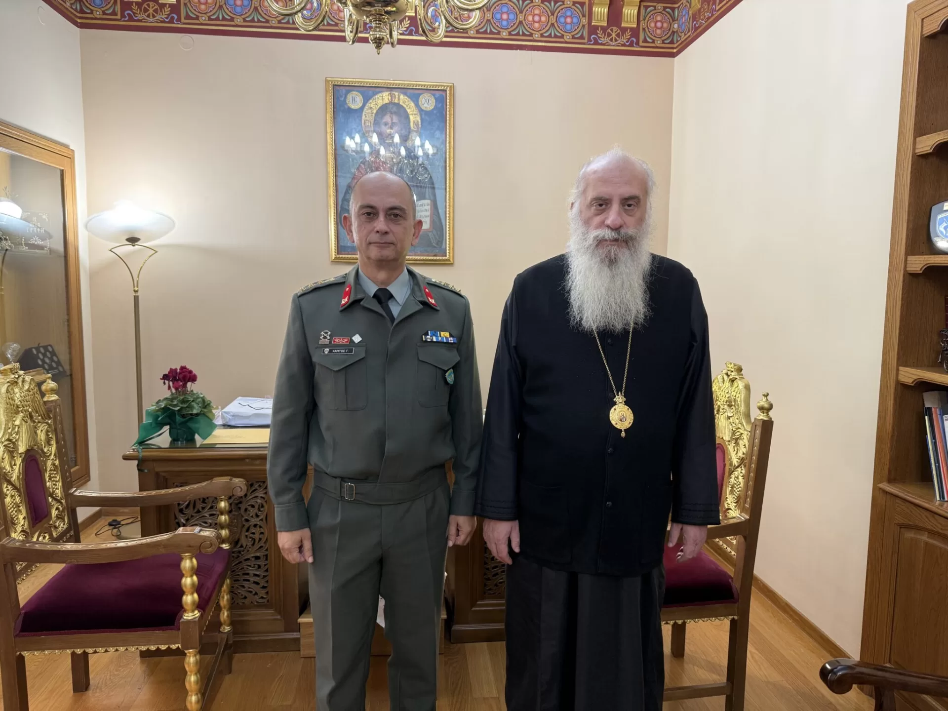 Εθιμοτυπική επίσκεψη στον Σεβασμιώτατο Μητροπολίτη Μαντινείας και Κυνουρίας κ. Επιφάνιο, πραγματοποίησε σήμερα, Τετάρτη 5 Νοεμβρίου ο Διοικητής του 9ου Συντάγματος Πεζικού – ΚΕΝ Καλαμάτας Σχης (ΠΖ) Γεώργιος Χαρίτος, ενόψει της μετατροπής του 11ου Συντάγματος Πεζικού σε Τάγμα Εκπαιδεύσεως Νεοσυλλέκτων, υπαγόμενο πλέον διοικητικά στο 9ο Σύνταγμα Πεζικού.