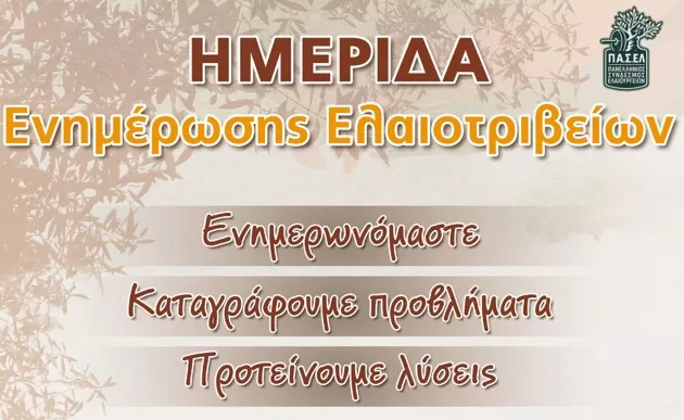Με στόχο την άμεση και ουσιαστική ενημέρωση των επαγγελματιών του ελαιοκομικού κλάδου για σημαντικές αλλαγές που αφορούν τη λειτουργία των ελαιοτριβείων, ο Πανελλήνιος Σύνδεσμος Ελαιουργείων (ΠΑΣΕΛ) και το Επιμελητήριο Αρκαδίας συνδιοργανώνουν ενημερωτική ημερίδα το Σάββατο 4 Οκτωβρίου 2025, στις 11:00 π.μ., στην αίθουσα εκδηλώσεων του Επιμελητηρίου Αρκαδίας (25ης Μαρτίου & Πανός 21, Τρίπολη – Είσοδος από 25ης Μαρτίου).