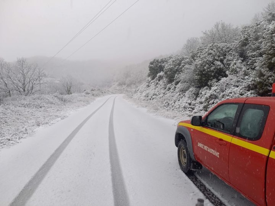 Αυτή τη στιγμή παρατηρείται ασθενής χιονόπτωση σε ορισμένα ορεινά χωριά του Δήμου Μεγαλόπολης, χωρίς κανένα πρόβλημα.