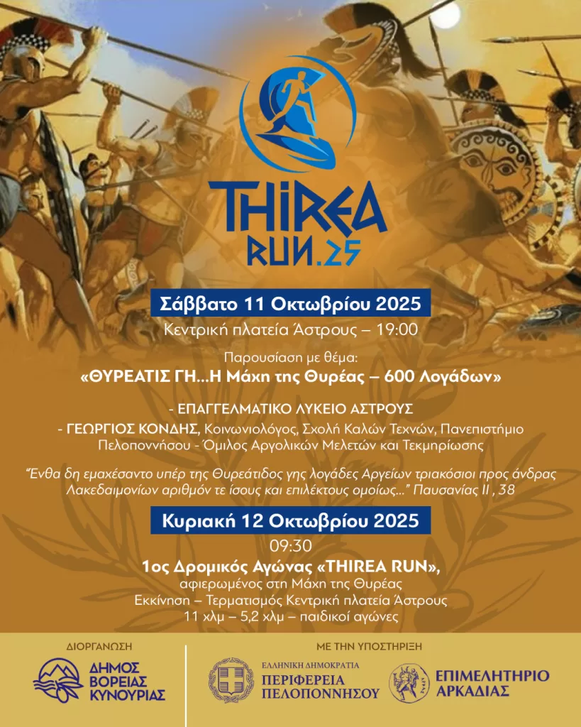 Το Επιμελητήριο Αρκαδίας στηρίζει έμπρακτα τον 1ο Δρομικό Αγώνα THIREA RUN, μια διοργάνωση που αναδεικνύει με ξεχωριστό τρόπο την ιστορία, τον πολιτισμό και τον αθλητισμό της περιοχής μας.