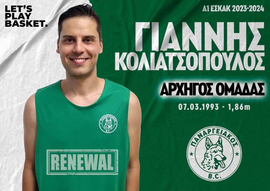 Στη διάθεση της ομάδας του Παναργειακού B.C. θα είναι και την ερχόμενη σεζόν ο αρχηγός της Γιάννης Κολιατσόπουλος, καθώς συμφώνησε με την Διοίκηση για την παραμονή του.