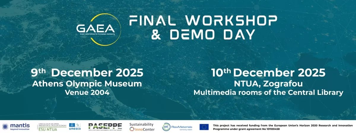 The GAEA Challenge is delivered by Mantis Beyond Innovation in collaboration with the UNESCO Chair for Green Innovation & Circular Economy (NTUA), PASEPPE, Sustainability InnoCenter, and EIT RawMaterials. This project has received funding from the European Union’s Horizon 2020 Research and Innovation Program under grant agreement No. 101100458.